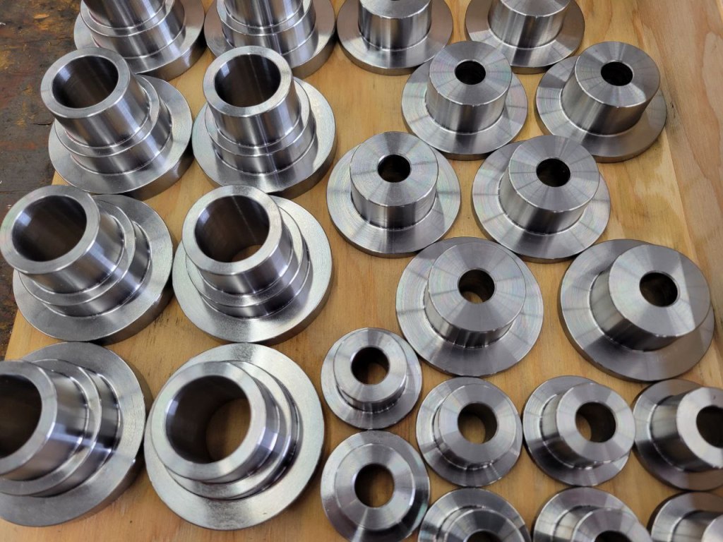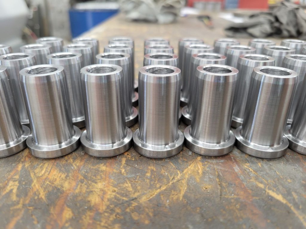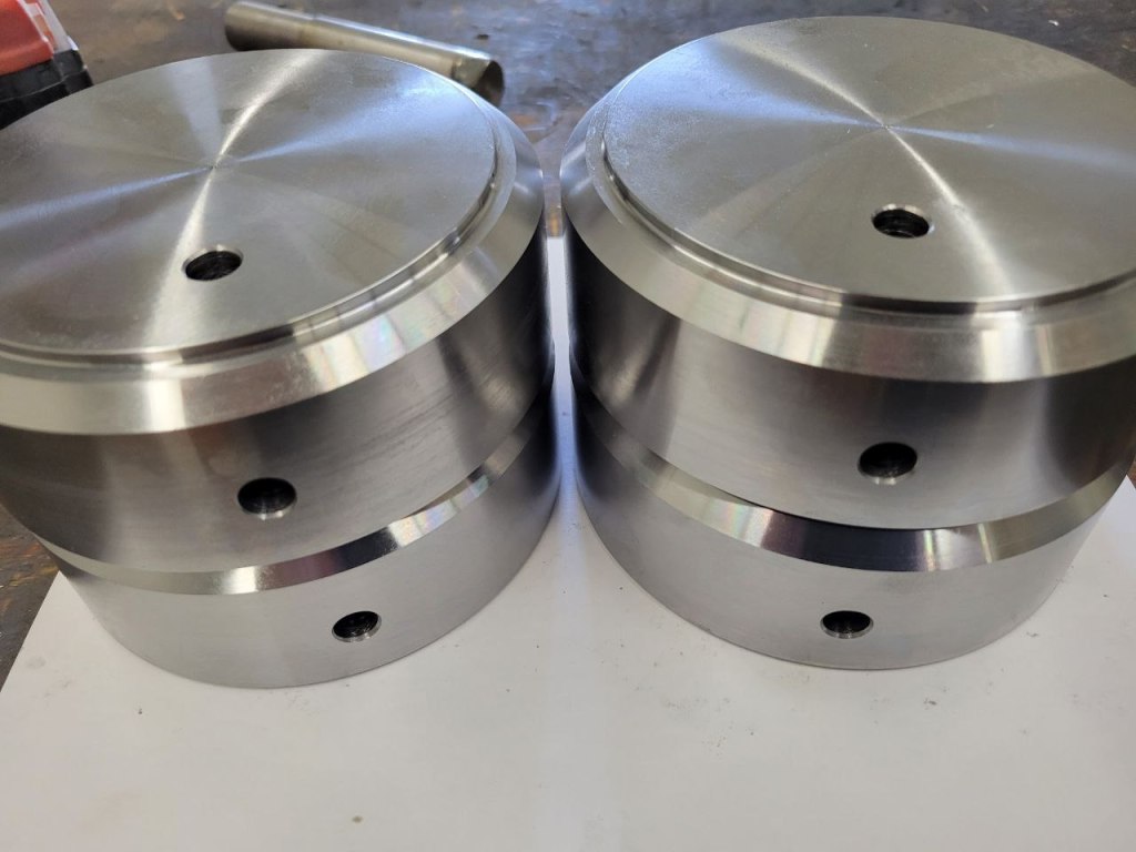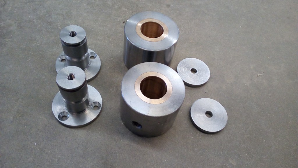 Durabar cylinder glandA2 tool steelRepair damaged hub and spindleProduction run of steel partsDurabarMachined impeller castingsSteel hydraulic cylinder partsRepair stripped threads6061 Aluminum1045 SteelAluminum Mold InsertsSteel part assemblyGear and shaft assembliesWaterjet cut gear assemblies on machined shaftsAluminum pattern modificationAluminum rings with special thread on ID and ODSteel partsMatching pins and bushings with brass insertsGo GaugeSteel bushings ready for hardeningComplete set of finished partsSteel castings after machiningTensile Test Bars